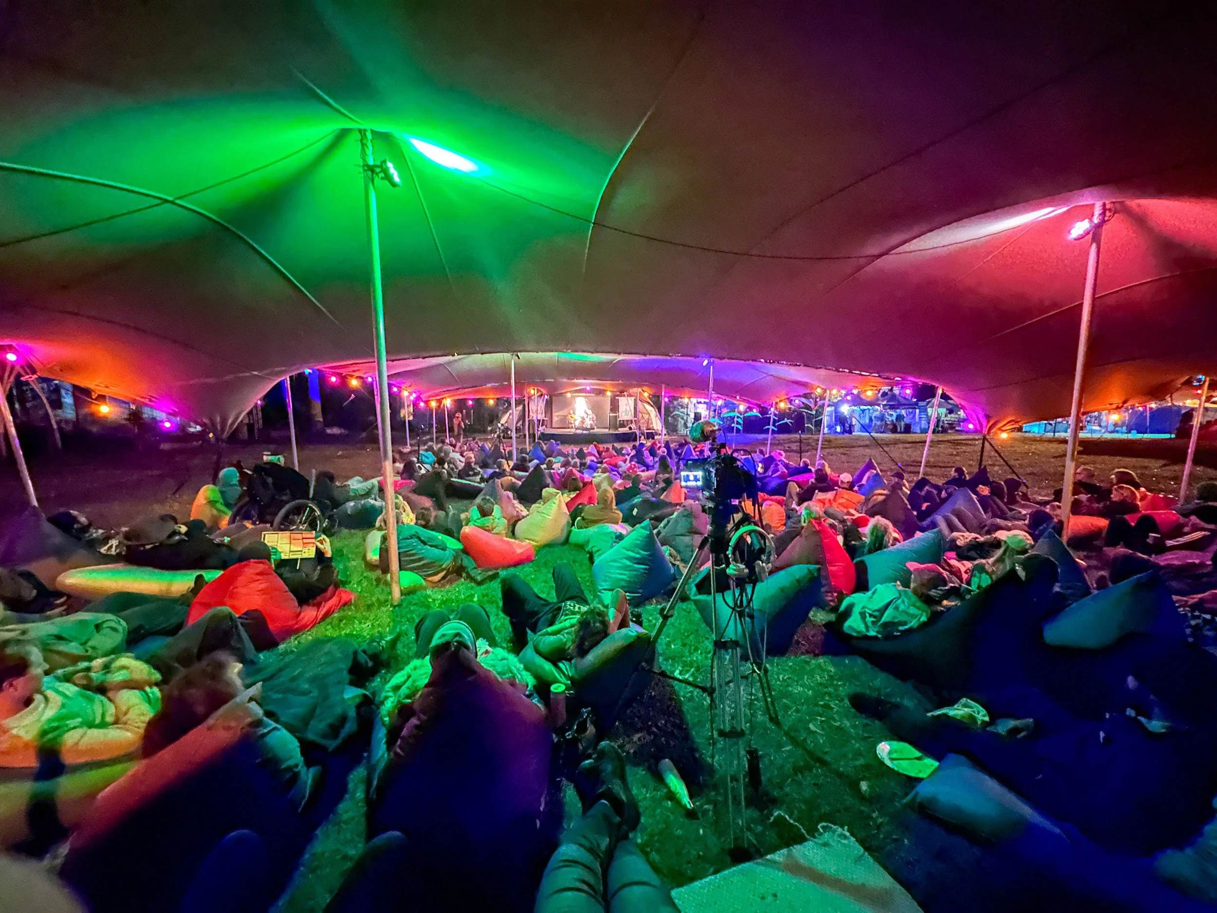 The morning opened with Grok3, an ambient audiovisual collaboration by VJ Mandala and DJ Krusty, easing the site toward its final stretch.